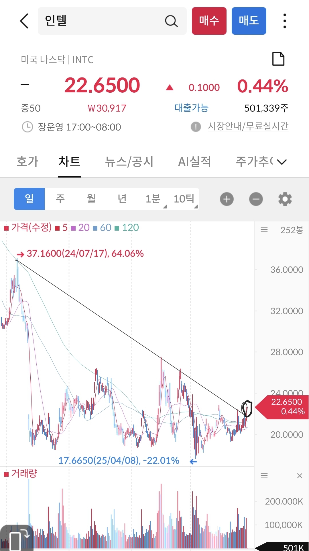 인텔 분석 : 챠트, 종목, 섹터 유튜브 보지 마시고 GPT에게 분석 맡기면 더 정확합니다.